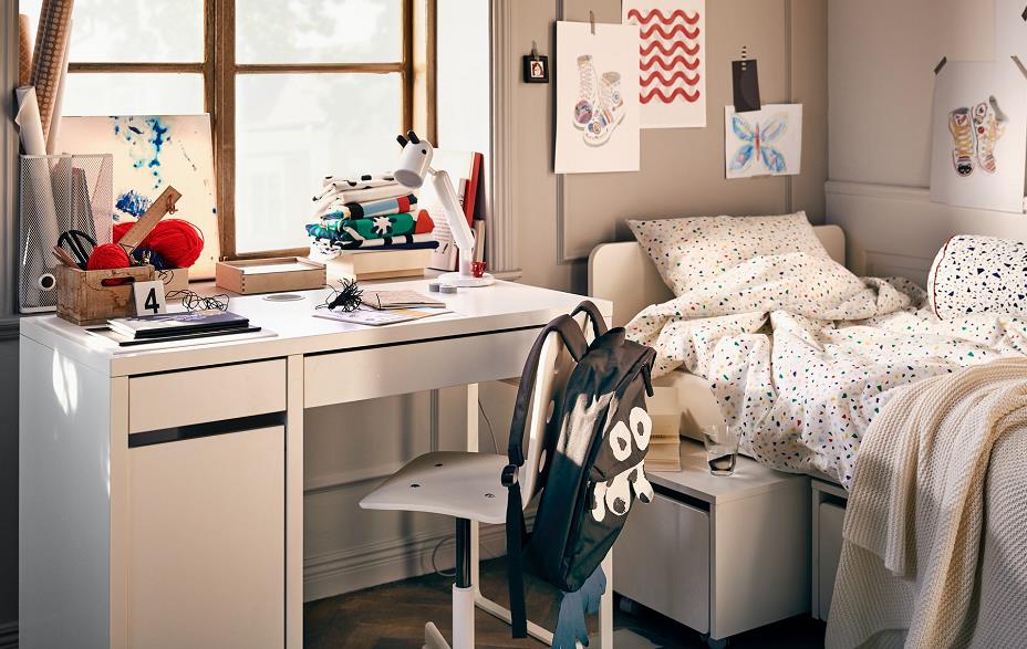 成長中的中學生注重學習成績,同時開始追求私人空間。要營造更舒適的學習空間,當然不少得一張有規劃的書枱,專為中學生而設的MICKE系列備有多款型號,多功能性而且設計簡潔,亦可配搭系列中的其他書枱或抽屜組合,或在書枱上放置SKÅDIS洞洞板套裝及MOPPE小型抽屜櫃,增加更多貯物空間收納文具、書本、筆記簿等物件,延伸工作空間。