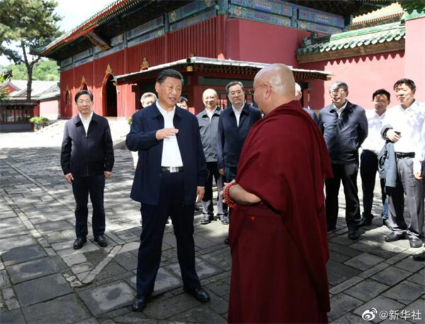 習近平總書記24日在河北省承德市考察調研。他先後來到承德避暑山莊、普寧寺、承德博物館、雙灤區偏橋子鎮大貴口村、高新區濱河社區居家養老服務中心,圍繞文化遺產保護傳承、宗教工作、民族團結、鄉村振興、養老服務等實地調研。(图片來源:新華社微博)