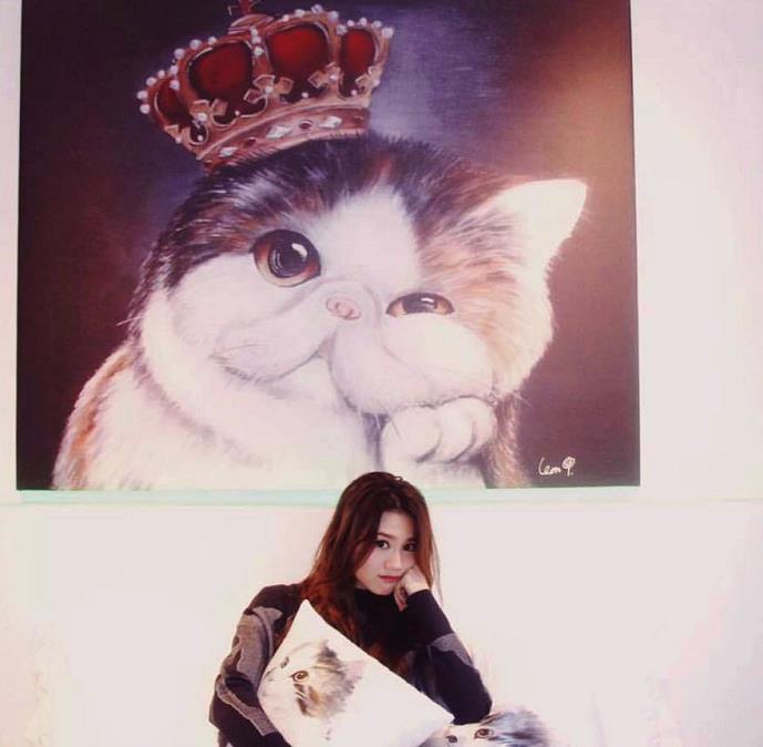 藝人周秀娜亦是「托腮貓Gloomie」的粉絲,曾到畫展「朝聖」。