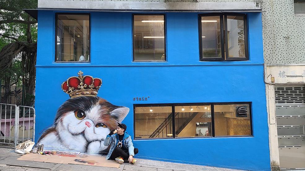 「托腮貓Gloomie」壁畫吸引了眾多貓奴前往打卡留念。