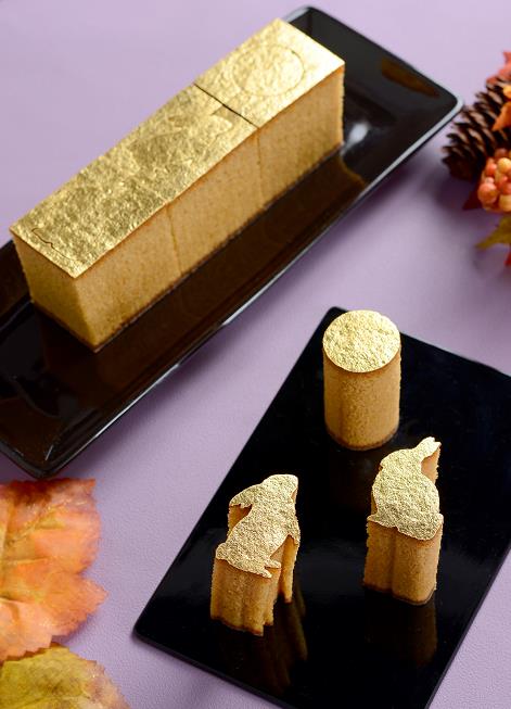 金澤萬久金箔蜂蜜蛋糕,包含圓月和兔子等應節圖案,售價HK$218.8。