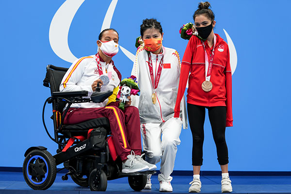 值得一提的是,在27日女子50米蝶泳S5級的領獎台上,獲得金牌的盧冬見銀牌和銅牌得主都坐著輪椅,在合影時刻意半蹲以與她們保持相同高度。這一畫面也被不少網友認為是本屆殘奧會最讓人感動的瞬間。30日,蔣裕燕還獲得女子50米蝶泳S6級冠軍。