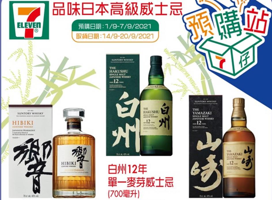 中秋臨近,是時候選購過節食品,除了月餅、甜點之外,美酒也是節日佳品。7-Eleven將推出日本人氣威士忌限定預購,讓消費者在9月1日早上7時起至9月7日在預購站 (www.7-eleven.com.hk/zh/news/preorder)預購,並在9月14日至20日中秋節之前取貨。