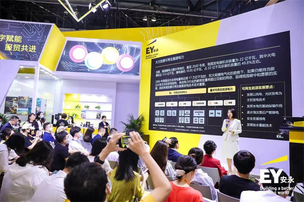 據介紹,此次服貿會,安永聚焦智能、綠色、開放、創新,這四大方面,通過線上與線下、虛擬與現實相結合,實現多維互動與沉浸體驗,展示在數字技術、綠色發展、營商環境、服務貿易等領域的服務能力與研究洞察。