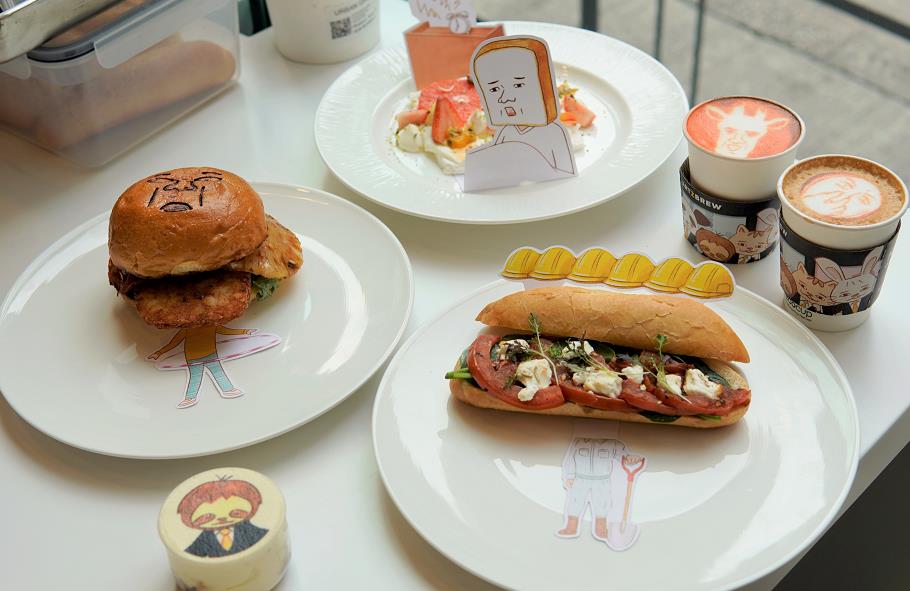 Artzbrew分為上下兩層,地下是Cafe,門口處已有「超誇張法包人」立體裝置,室內外皆布滿畫作及打卡點,最驚喜是戶外庭園的樹獺裝置:樹獺行駛0km/h時速紅色電單車、化身畫家造型,忠實呈現「慢活」態度。Cafe提供一系列Keigo主題咖啡、造型主食,邊喝咖啡,邊品嘗可愛造型美食,愜意自在,當然一定是「相機食先」。
