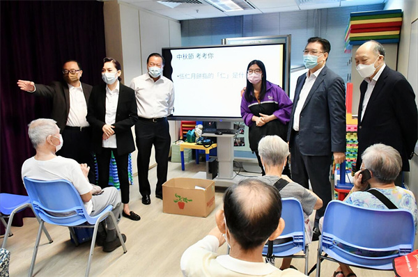多名港區人大代表今日(14日)參與了一場基層活動,他們到達位於西區堅尼地城社區綜合大樓的工聯會樂群服務處黃光漢社區服務中心考察,並與多名長者和小童親切交流,以了解他們生活狀況和需要,並在中秋節前夕向市民送上祝福。