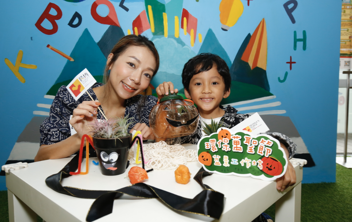 10月以綠色萬聖節為主題,商場準備了「環保萬聖節盆景工作坊」,家長與小朋友聯手種植一個迷你蜘蛛盆景,盆栽更巧妙地融合恐怖又可愛的裝飾,促進小朋友對大自然的喜愛和提升環保意識。