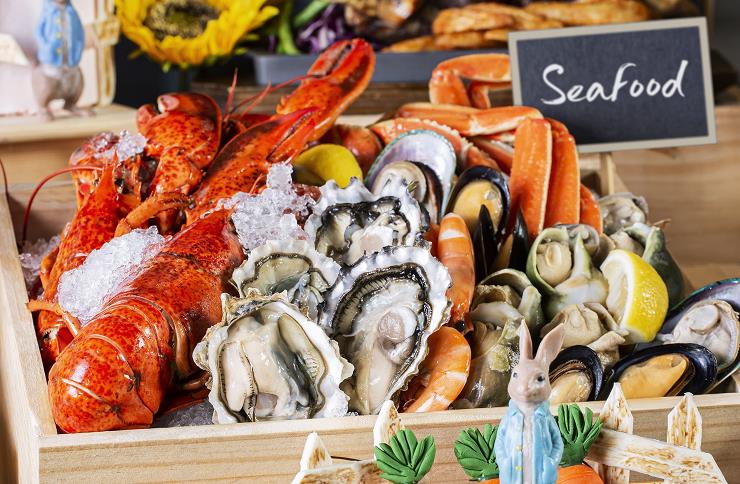 酒店自助晚餐繼續聯乘電影《比得兔2 :走佬日記》,特別設置期間限定的比得兔主題甜品區,戲中經常出現的墨綠色農夫車於沙律區中展示,車斗上放置一盤盤比得兔主題食物。此外,餐廳主打多款以矜貴食材如和牛肩、龍蝦、鴨肝等製作而成的美味菜式,想必能滿足大人及小朋友的口味。(記者:Cyan)
