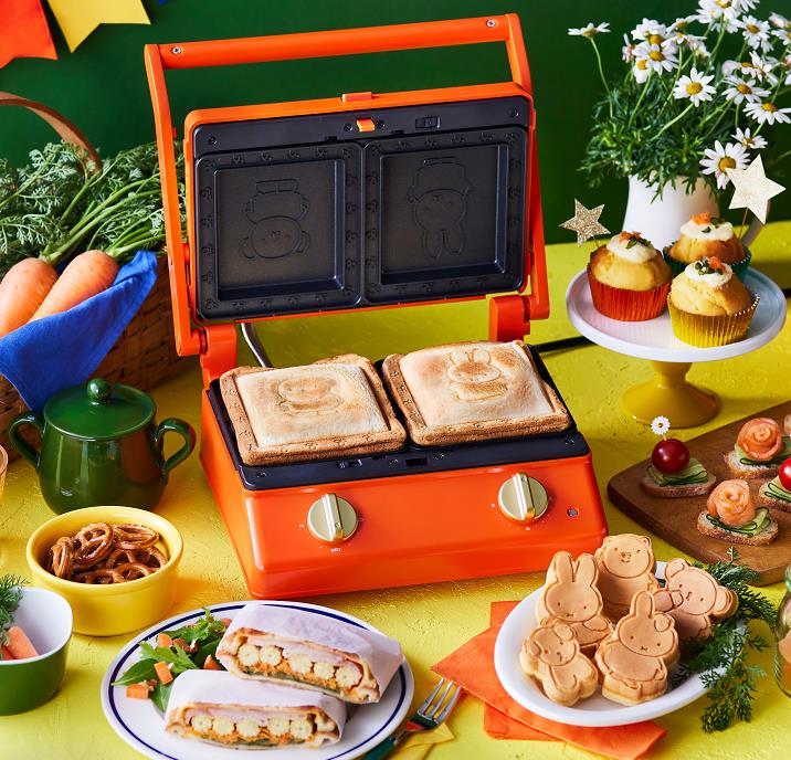 BRUNO x Miffy雙片厚燒三文治機(預購價HK$1098),附送Miffy造型三文治及班戟烤盤。