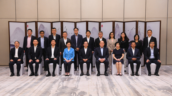 行政長官林鄭月娥26日在西安與國家體育總局局長苟仲文會面。圖示林鄭月娥(前排左四)、苟仲文(前排中)、澳門特別行政區行政長官賀一誠(前排右四)、民政事務局局長徐英偉(前排左二)與其他與會者合照。