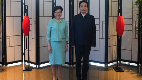 行政長官林鄭月娥(左)26日在西安與陝西省省長趙一德(右)會面。