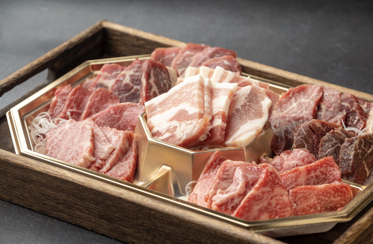 該店推出兩款和牛自家燒外賣套餐,「鹿兒島A4和牛17品2人盛」(網上預訂價HK$998),內有鹿兒島A4和牛拼盤(4部位各2件)、美國頂級牛肉拼盤(四個部位:牛板腱、牛封門柳、牛肩胛肉眼、牛小排)、日本豚腩肉(4件)、鹿兒島薩摩赤雞拼盤(雞肝、雞心及雞胸肉軟骨)等,嗜肉者可大飽口福。另一款「熊本F1及鹿兒島A4和牛25品4人盛」(網上預訂價HK$1599),包括熊本F1霜降和牛西冷、鹿兒島A4和牛拼盤(4部位各2件)、日本豚腩肉(8件)、鹿兒島薩摩赤雞拼盤,以及內有廣島蠔、帆立貝、海蝦、青花魚及多春魚的海鮮拼盤等。套餐均包括蔬菜拼盤、三文魚味噌湯及白飯。