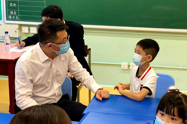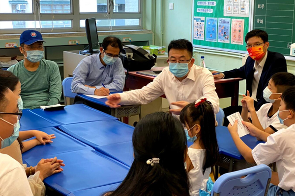 中聯辦新界工作部副部長胡啟明與部分學生及學生家長就學習普通話進行對談。