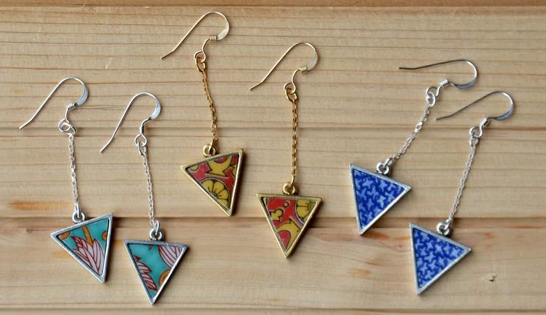 廢棄的陶器碎片,化身為充滿藝術味道的耳環(上圖)及吊飾(下圖)。