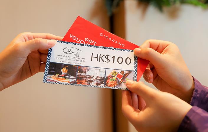 是次推出的餐飲商戶電子現金券面值為港幣100元,而時尚服飾、美容及運動品牌的電子現金券面值為港幣300元,全部均以6折發售,不設最低消費限額。CLUB CG會員凡於網上平台購買商戶現金券滿淨值港幣 1000 元,於結帳時輸入會員優惠碼,即享全單額外9折優惠,每位會員可重複使用優惠碼最多3次。其中時裝品牌HUGO BOSS Nilas 3皮革外套Outlet價港幣4690元 (原價:港幣6700元),使用4張面值港幣300元的商戶現金券,便可以折實價港幣4210元購入。