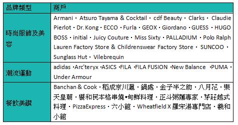 東薈城名店倉SHOPPING+網上平台參與品牌: