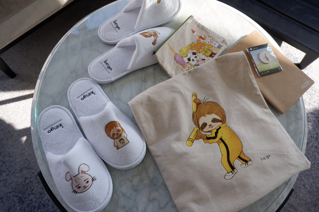 Keigo在港越來越受歡迎,繼與商場、Cafe合作後,是次更推出主題Staycation,由酒店大堂區域到電梯再去到主題房間,都可以見到Keigo家族的蹤影。每房更可獲贈一份價值逾$450的Keigo主題禮品包,包括Keigo主題單肩布袋、收納布袋、拖鞋及金屬徽章。