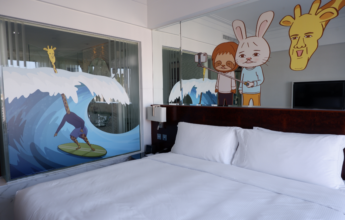 豪華客房掛有Keigo畫作及可愛抱枕。
