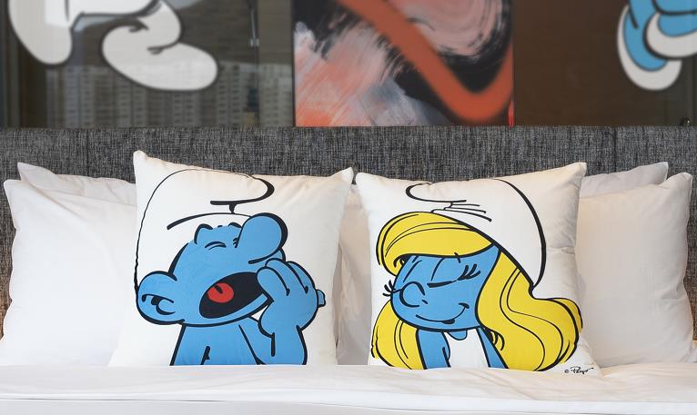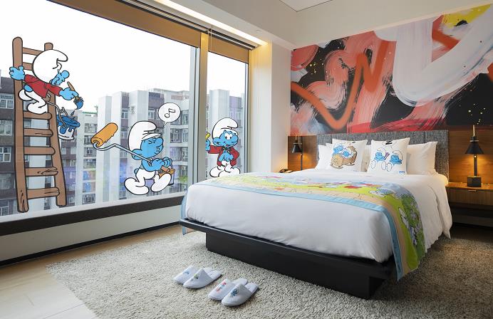 藍精靈家族出沒注意!Klook與東隅酒店首度聯乘推出全港首個藍精靈主題Staycation——「藍精靈.十分勁」。酒店入口、大堂及房間內皆可以見到藍精靈家族的蹤影,而藍精靈主題客房內的特色布置則有主題抱枕及多個主角的玻璃窗貼紙等!城市或海景精選客房的兩邊設有落地大玻璃窗,加上可愛又活潑的藍精靈裝飾,想必是打卡的好地方!