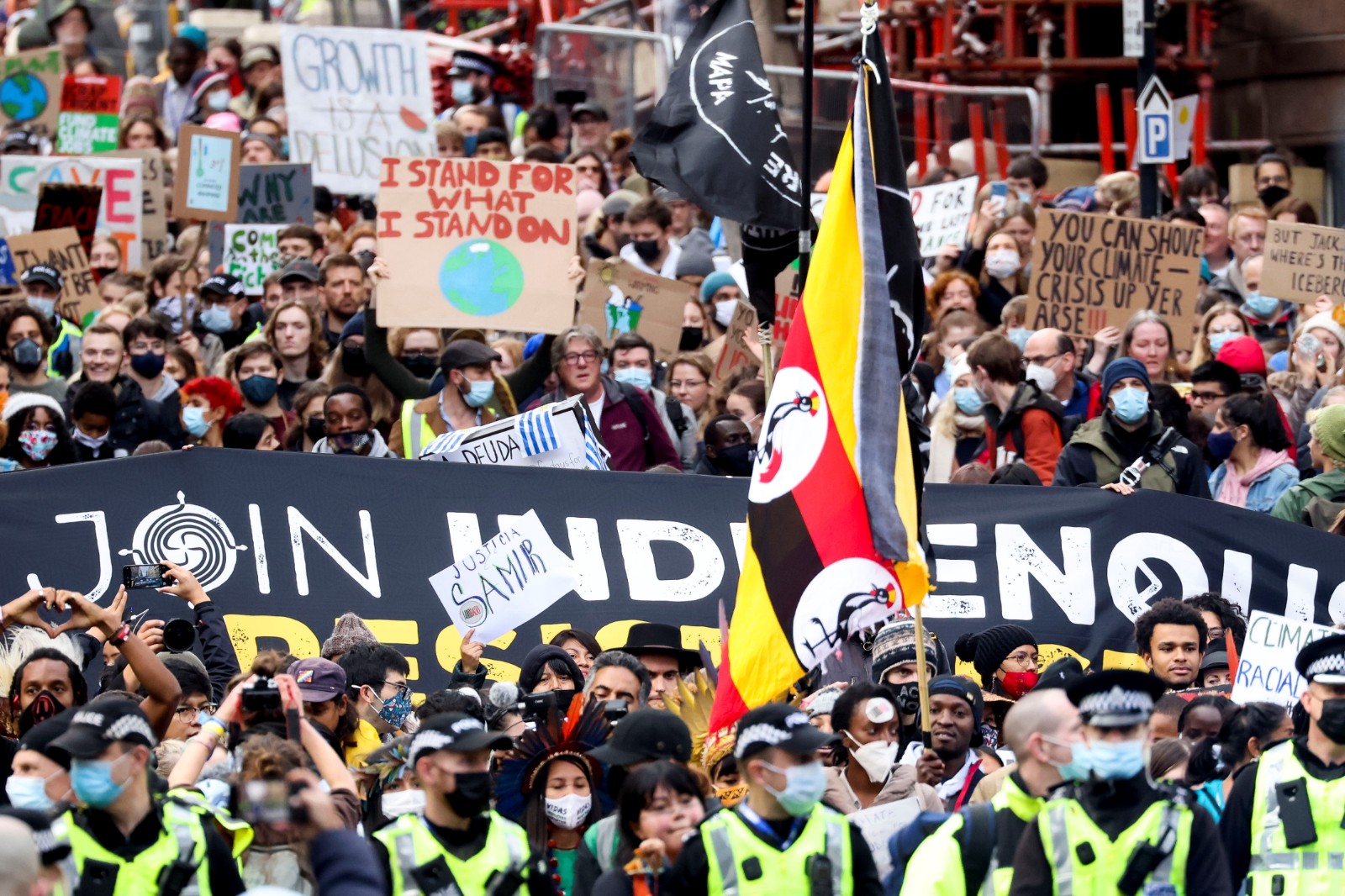 這場在蘇格蘭格拉斯哥舉行的抗議活動,旨在凸顯出緩慢的減排速度,與全世界氣候危機之間,存在脫節情況。
