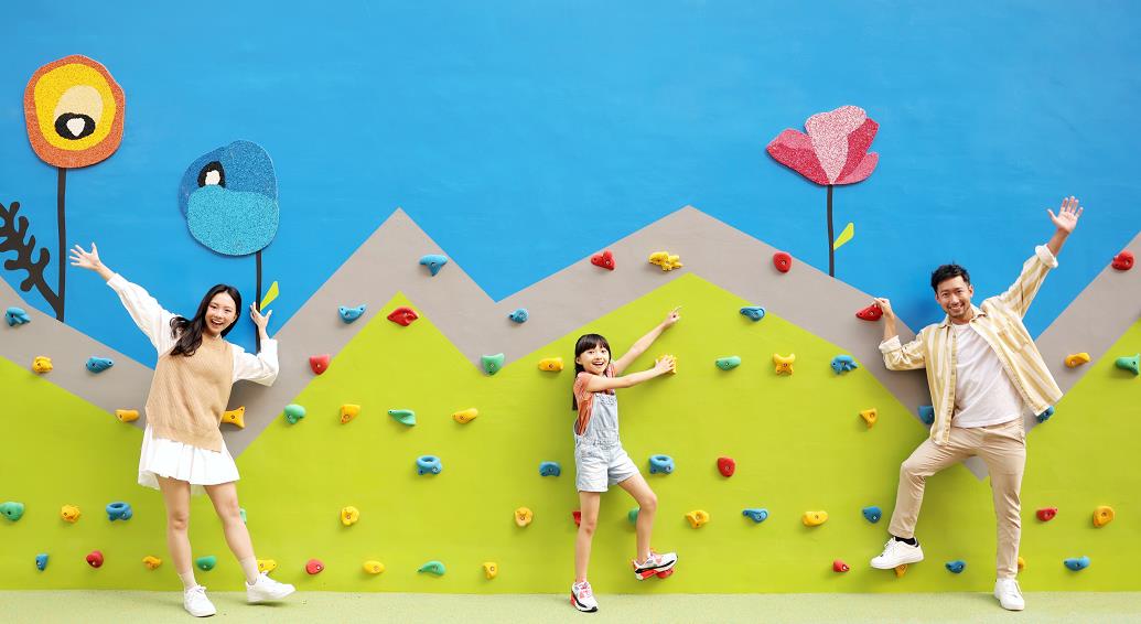 「動感攀爬天地」,全港最長近50米的攀爬牆,小朋友可以在攀爬時盡情「放電」。