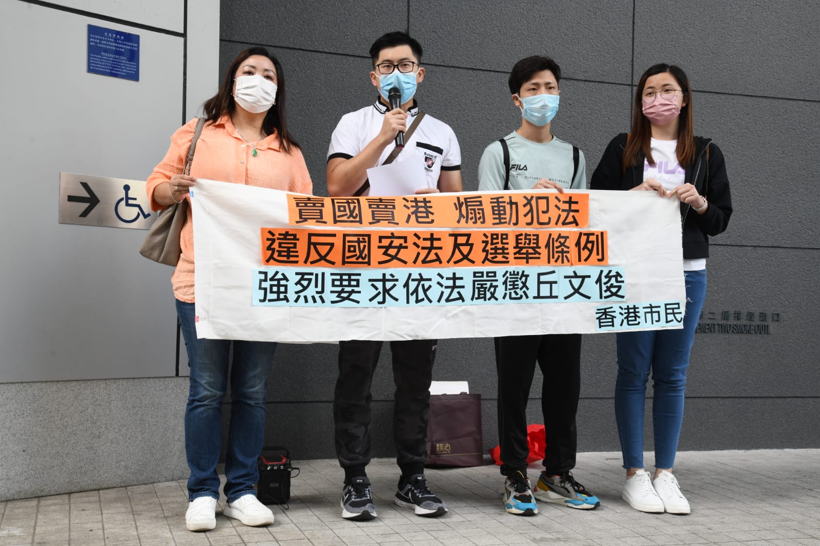 市民指出,丘文俊賣港求榮,企圖破壞立法會選舉,促特區政府有關部門嚴正執法,盡快徹查丘文俊的言行,嚴懲丘文俊及其幕後主使,凍結並調查其資金收入,不能讓違法人士逍遙法外。