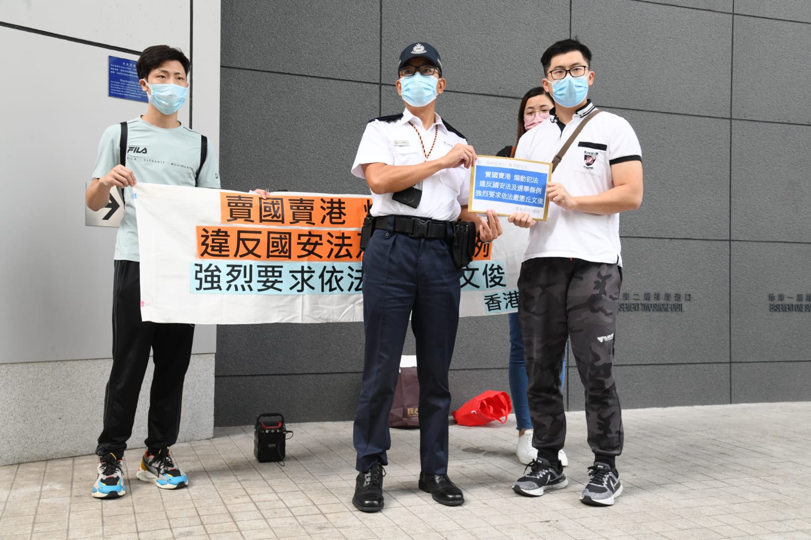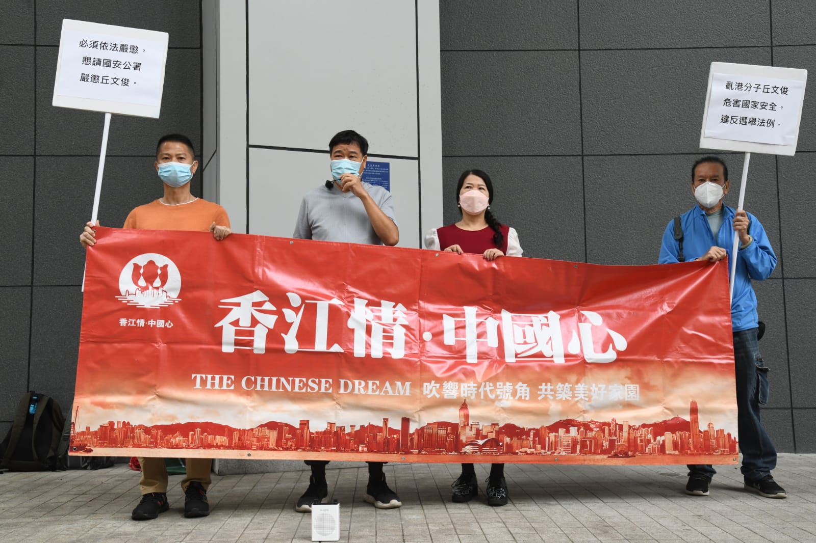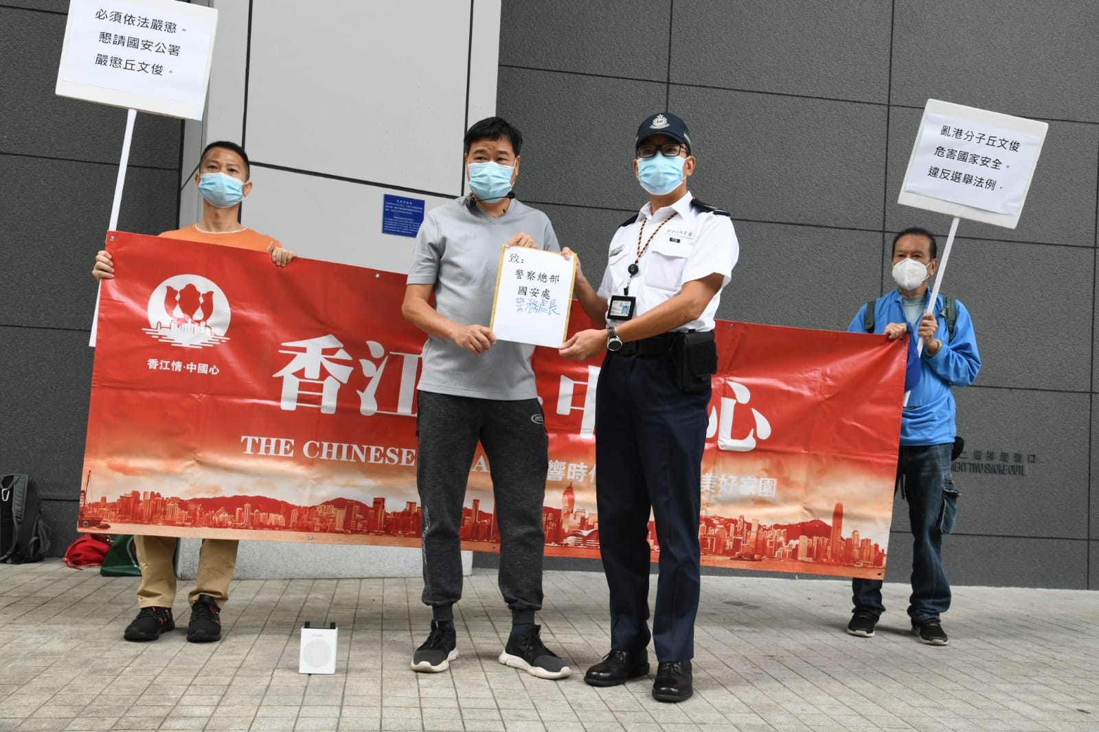 團體「香江情·中國心」今早(18日)到警察總部請願,促請國安公署嚴懲發表「港獨」言論、鼓吹杯葛立法會選舉的反對派前區議員丘文俊。
