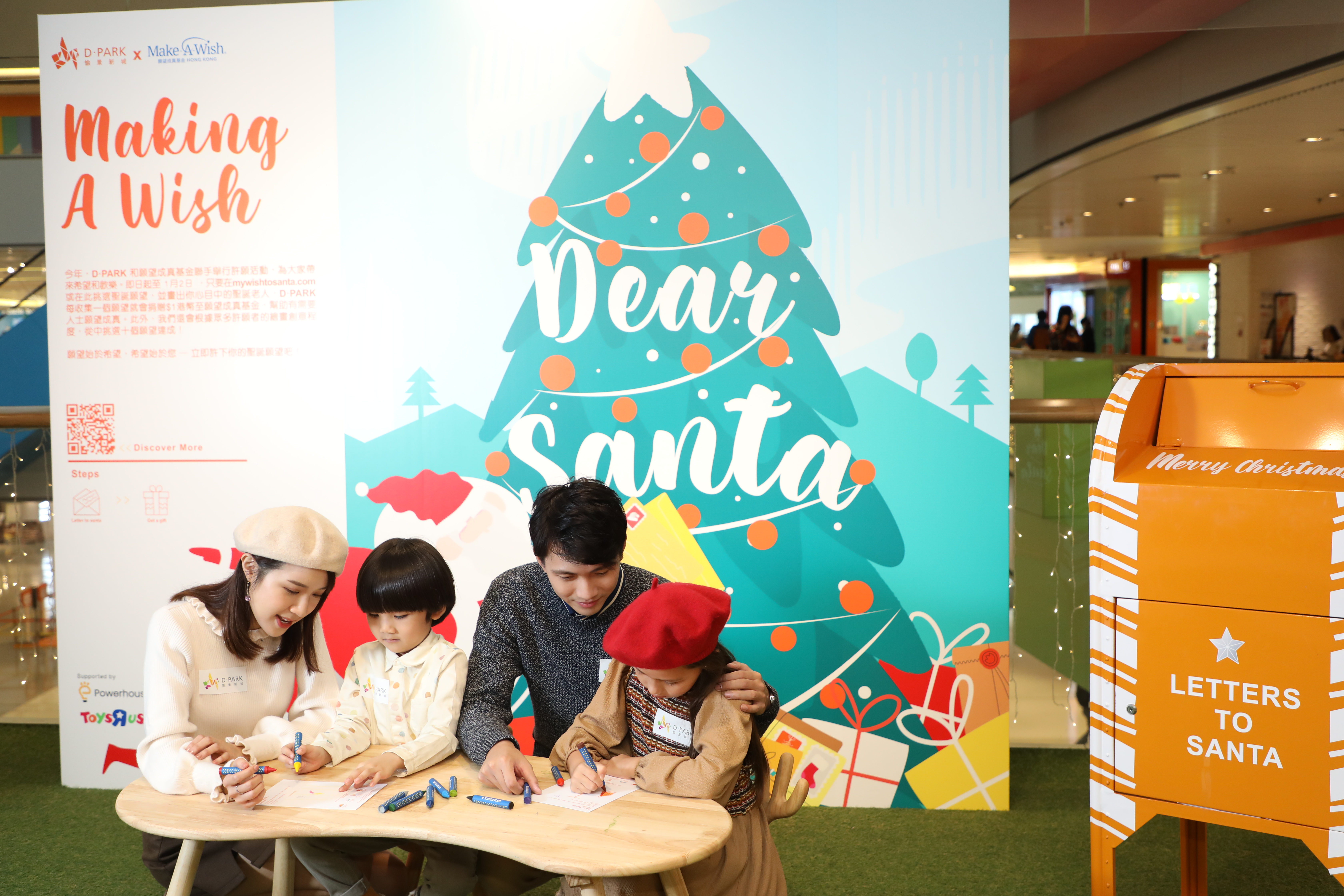 荃灣D·PARK愉景新城與願望成真基金(Make-A-Wish Hong Kong)聯手舉辦「Making A Wish」許願及畫聖誕老人活動,推動社區關懷實行有意義消費。由即日起至明年1月2日,在商場或於網上許下聖誕願望並投寄至聖誕老人信箱,D·PARK每收集一個願望,就會捐贈1元予願望成真基金,幫助有需要人士願望成真。