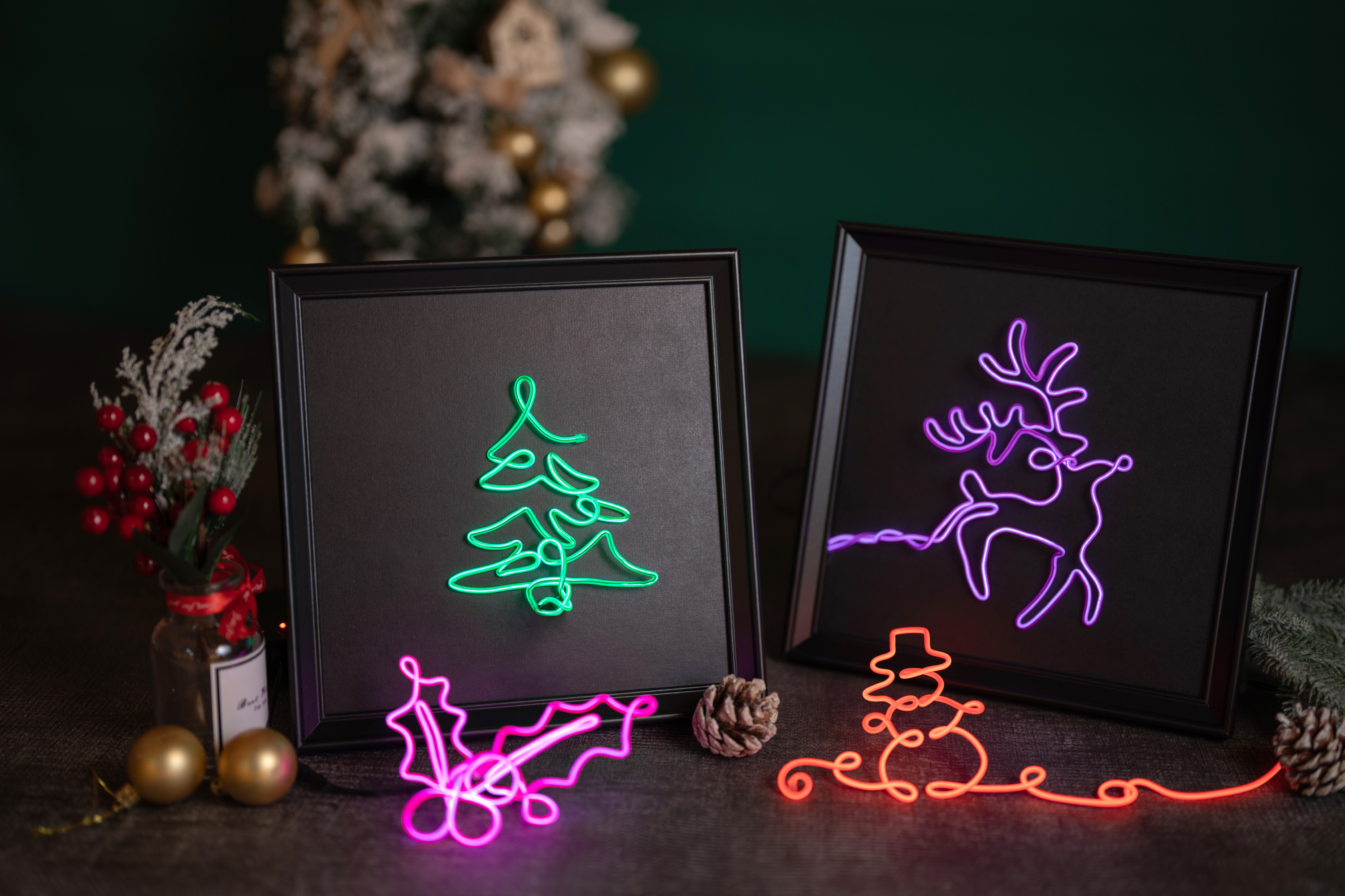 參加者可運用創意,挑選不同顏色的冷光線,再運用簡單工具,拼湊出別具個人風格的聖誕牆上掛飾或枱上擺設,然後放在燈座上,展示個人心思。
