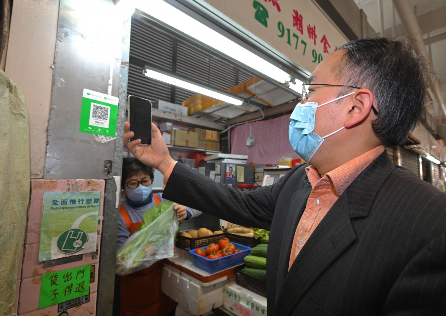 財經事務及庫務局局長許正宇今日(25日)到訪位於中西區堅尼地城的士美非路街市,視察街市商戶及顧客使用電子支付的情況,並呼籲市民在下月立法會換屆選舉投票日踴躍投票。