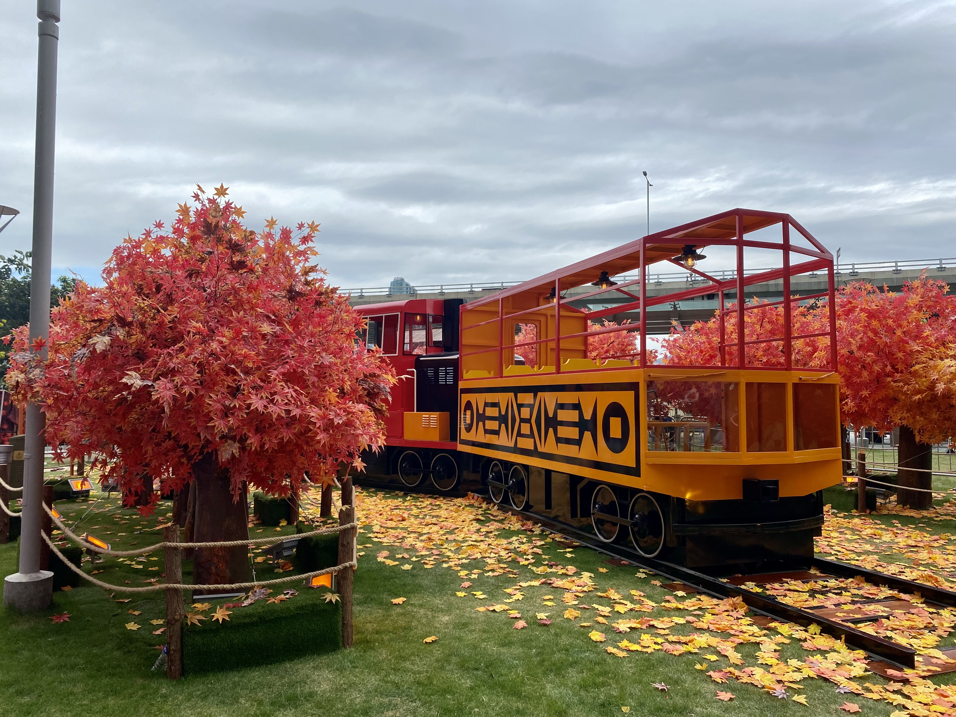 由即日起至1月2日,位於北角匯對出、北角碼頭旁的綠化地段,設有紅、橙、黃、綠、棕五色仿真楓葉園藝裝置,市民可免費遊走其中,更可與以「嵐山小火車」為藍本的火車頭及觀光車廂裝置合照,火車頭將定時響安及釋出仿真蒸氣,加上鐵道駅、火車路軌、飄散滿地的紅葉,讓市民盡享當季最美「楓」光。(記者、拍攝:Karena)