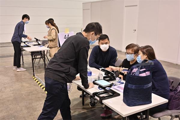 為令發出選票的工作更靈活、有效率和準確,是次選舉絕大部分一般投票站會使用電子選民登記冊系統發出選票。選民須在發票櫃枱出示香港身份證及按工作人員指示短暫拉開口罩,工作人員會使用電子選民登記冊平板電腦掃描選民的身份證,以核實該名人士是否已登記選民及確定他可獲發的選票種類,然後發出選票。