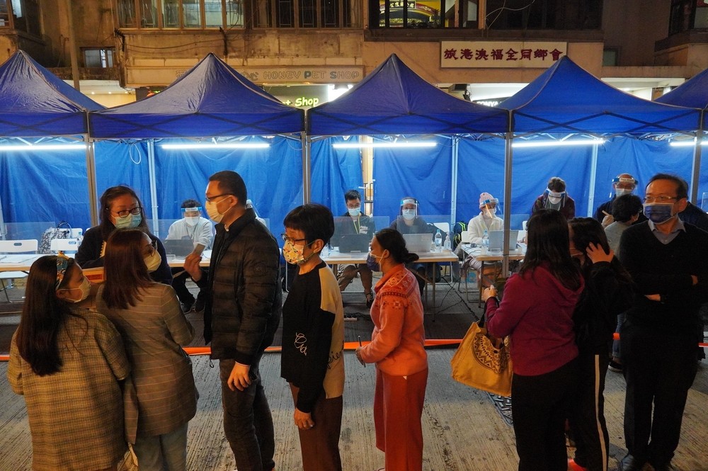 目前圍封強檢有5個地點,分別是鴨脷洲漁安苑碧安閣;北角城市花園1期3座(不包括城市中心商場地下、1樓及2樓的商舖。);跑馬地鳳輝臺18-19號;大埔舊墟直街4-20號美新大廈(不包括位於美新大廈地下的商舖及1樓至3樓的安老院);馬鞍山西沙路638號錦豐苑錦萱閣(F座)。(圖/記者 俊文 攝)
