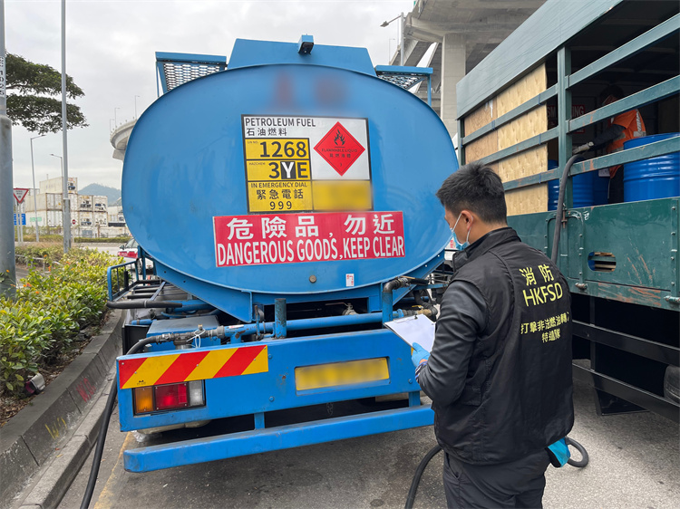 消防處打擊非法燃油轉注特遣隊聯同警方新界南交通部及青衣分區人員進行聯合行動,今日(21日)在葵涌永業街及青衣航運路一帶分別搗破兩個非法加油站,處方檢獲約4000公升市值約7萬元柴油並截獲1輛貯有柴油輕型貨車、1輛油缸車及大批入油工具與截獲兩名懷疑與案件有關男子。有關人士涉嫌違反《危險品條例》、《危險品(一般)規例》及《消防(消除火警危險)規例》,將會被檢控。