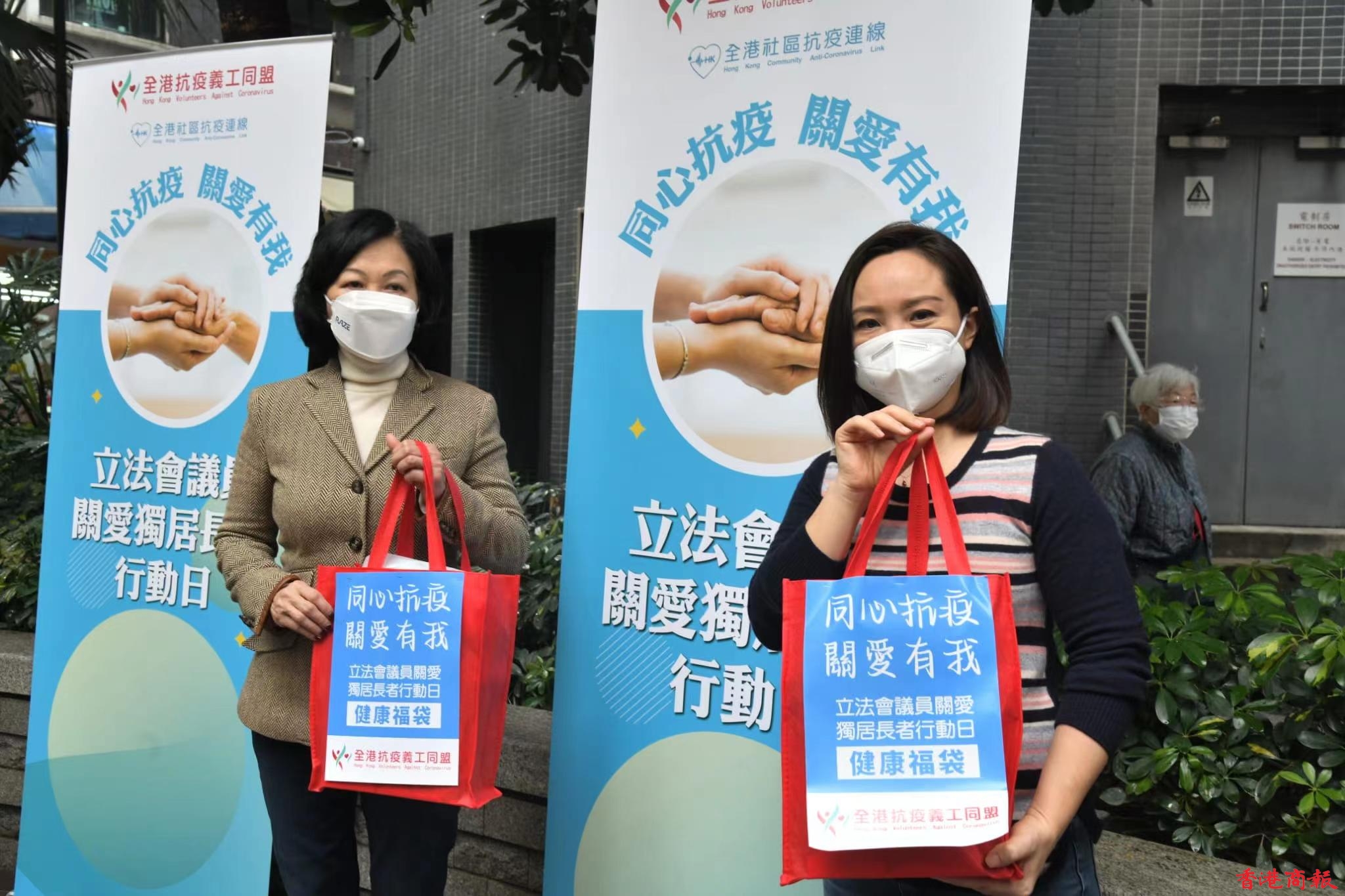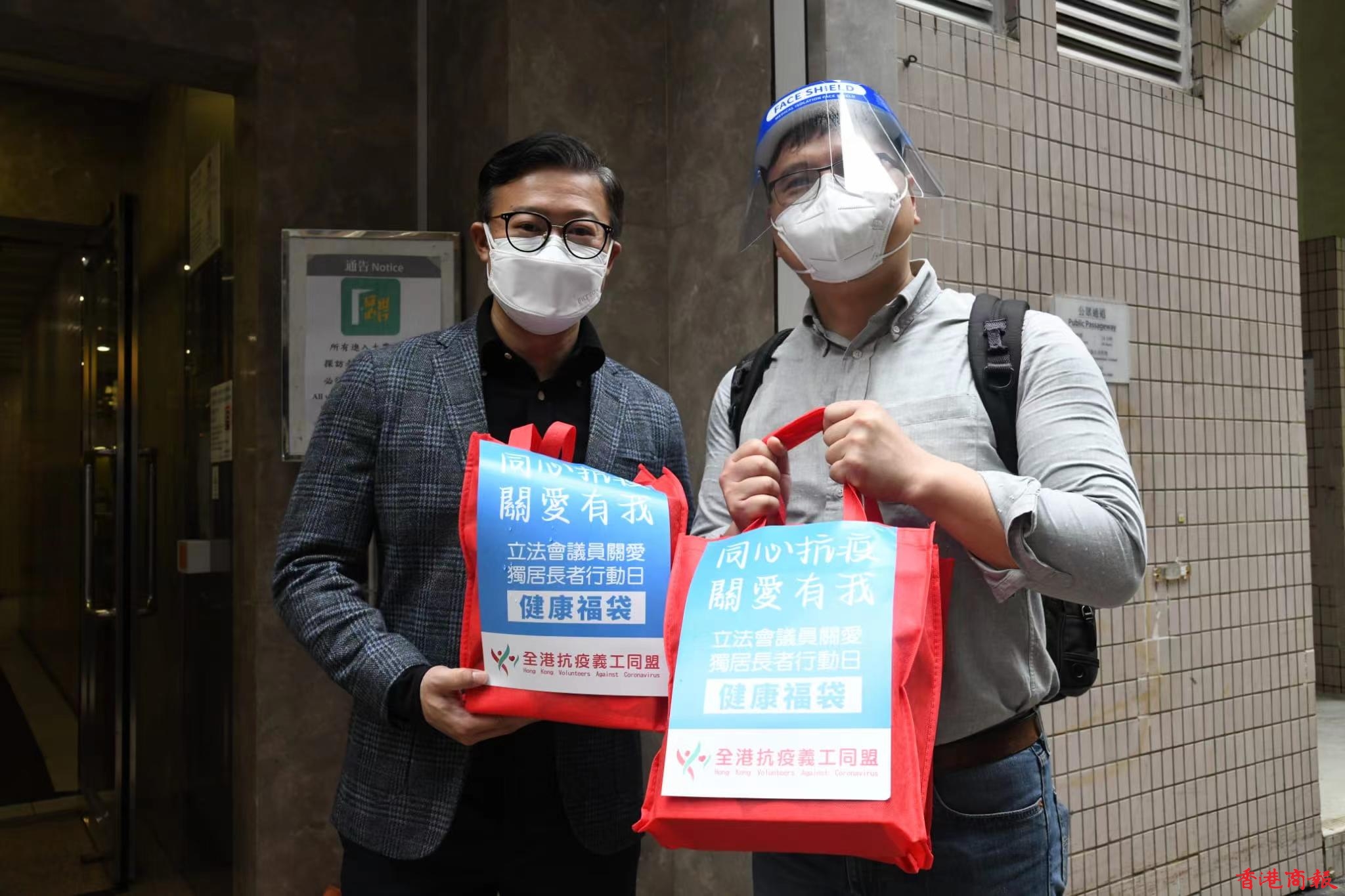 疫情下,獨居長者非常缺乏支援,全港抗疫義工同盟今日(25日)上午聯同8位立法會議員發起「關愛獨居長者行動日」,出席啟動儀式的立法會議員有吳秋北、葉劉淑儀、張國鈞、郭偉強、梁熙、陳家佩、陳學鋒、李鎮強,儀式後他們兵分4路分批前往中西區、南區、東區和灣仔區探訪獨居長者,並送上愛心防疫包。