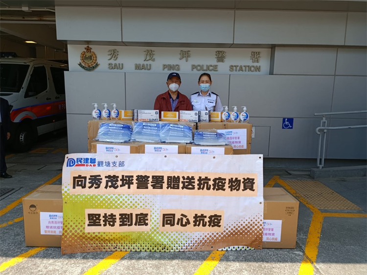 今日(6日)民建聯觀塘團隊,觀塘支部主席柯創盛帶領一眾議員及社區幹事,將一批快速檢測劑、口罩、保護衣、面罩及搓手液等抗疫物資送到秀茂坪警區,慰問前線警員、兼為警隊打氣。