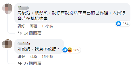 網友紛紛表示:「還是只會去綠色的城市,其他人的命不是命?」「如果真的在乎小孩,怎麼會等到如今這樣的疫情暴發」「馬後炮,很好笑,別活在自己的世界裡,人民很辛苦在抵抗病毒」「你敢講,我真不敢聽」「還笑得出來,傻眼,叫時中下台謝罪,去醫院當志工吧」「中重症跟死亡人數,對你們來說,只是數字對吧」?