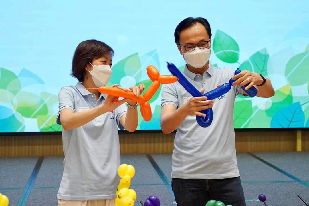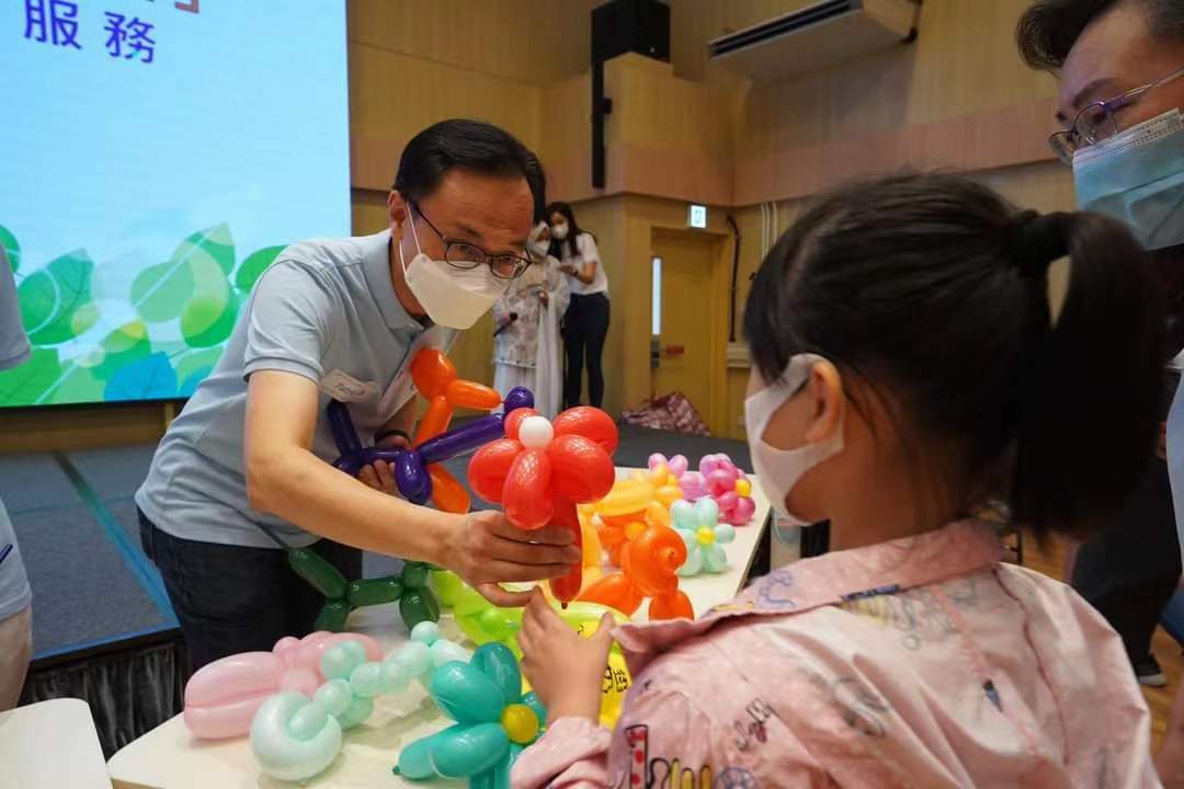 聶德權表示,義工們除在現場扭製氣球外,又把局內同事用午飯時間預先扭製好的長頸鹿、小狗、長劍、花朵、電單車等等不同種類氣球送給小朋友,原來這些氣球大人細路都喜歡。還準備了應節的端午糭和包括食物、文具、口罩、快速抗原測試套裝等日常用品的「愛心包」送給參與活動家庭,希望大家在日常生活中都能用上。