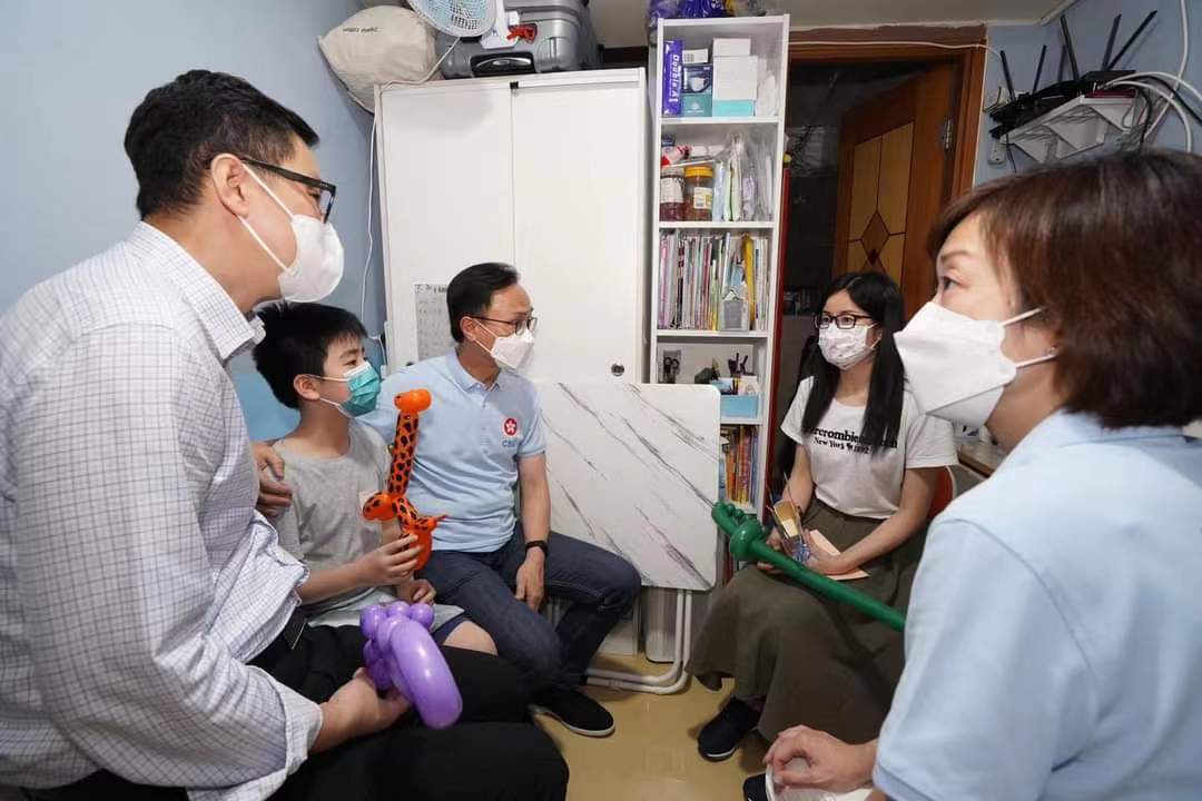 其後,義工隊又進行家訪,9歲的汶謙與媽媽住在文苑街一個劏房單位,屬新來港基層家庭。汶謙媽媽分享單位曾滲咸水,對起居影響好大,同時劏房租金高昂也成生活重擔,希望能盡快上公屋。增加房屋供應絕對是政府首要任務之一,未來班子定必盡力解決。