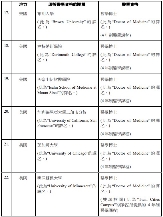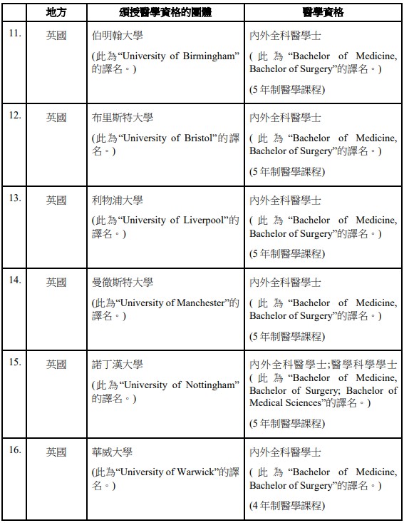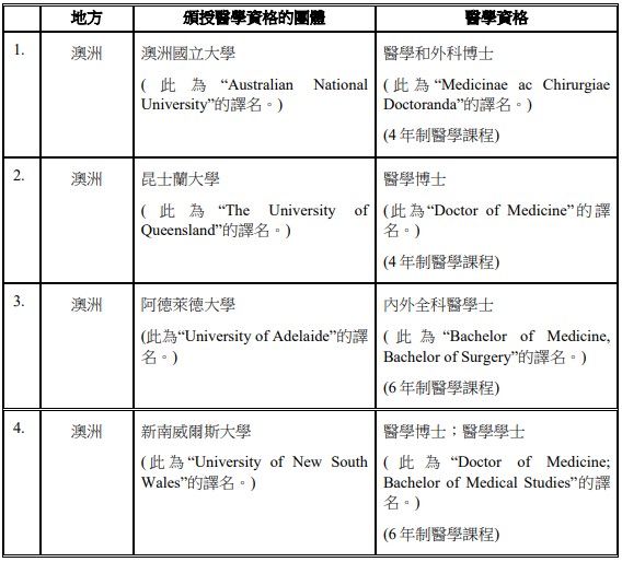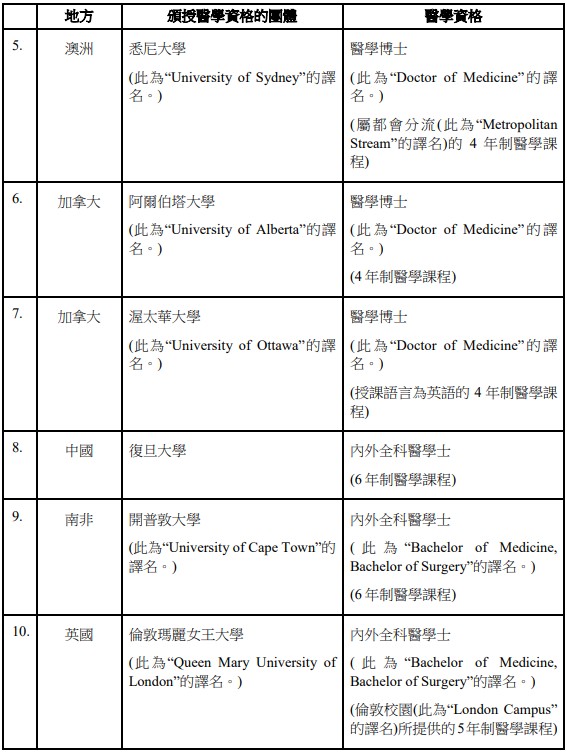 (b)頒授該醫學資格的團體以國際排名而論,大致上可與任何頒授本地醫學資格的大學比擬;