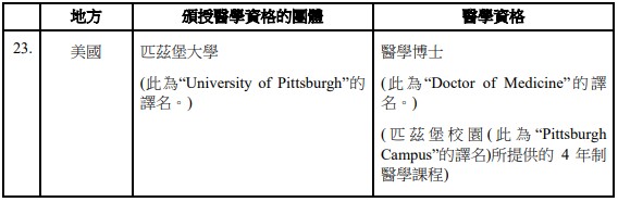 (c)以下列項目而論,大致上可與由任何本地大學頒授的醫學資格比擬: