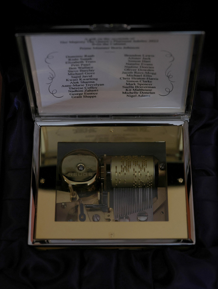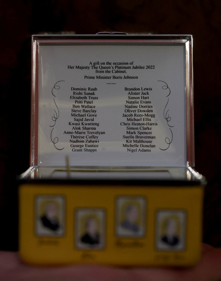 首相辦公室透露:「盒蓋內側還刻有內閣成員的名字,以象徵他們向女王對人民和摯愛的大英國協的奉獻和服務,表示堅定的欽佩與尊重。」