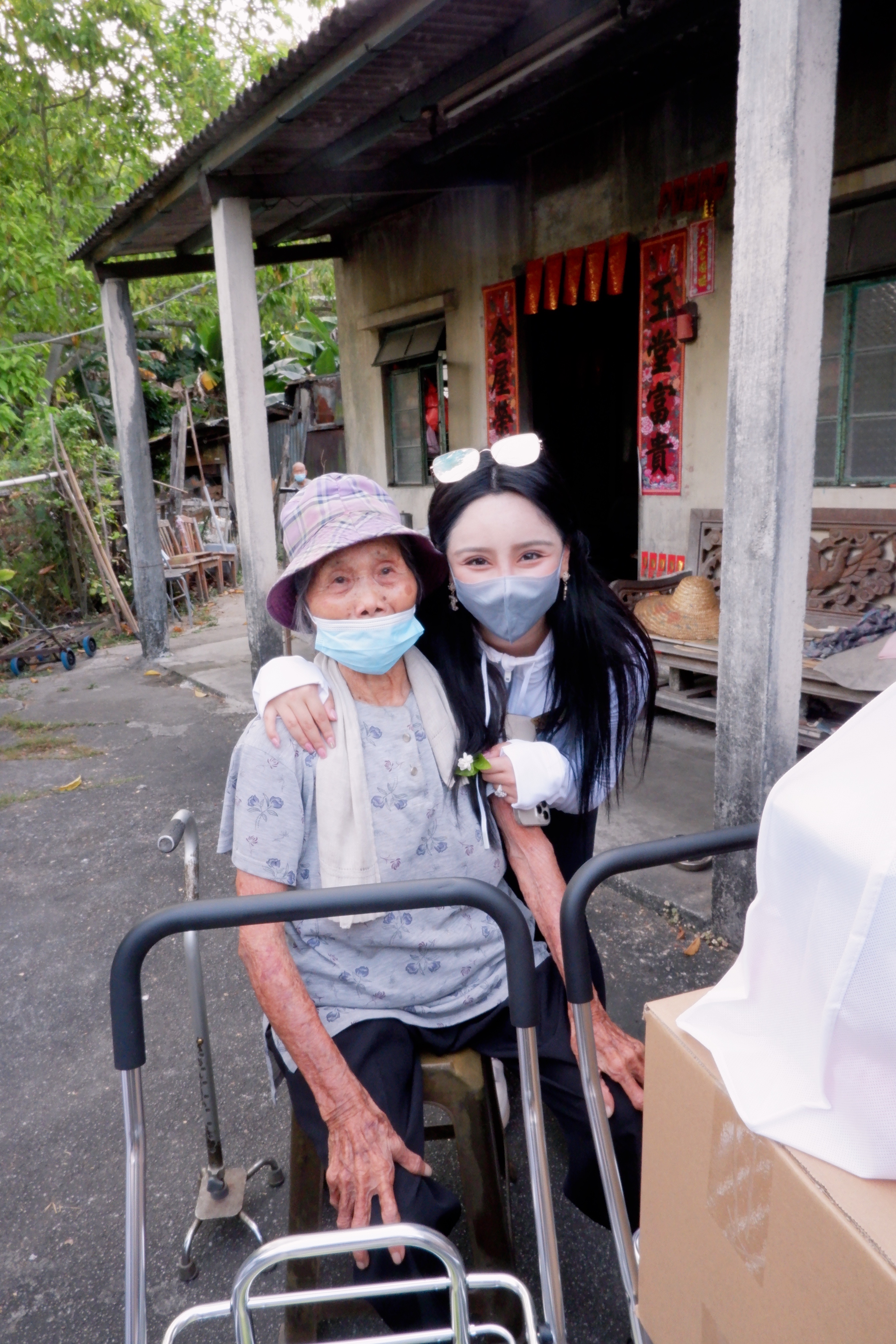 鄭慧賢到屯門屯子圍派發福袋,慰問村內孤苦無依的老人家。