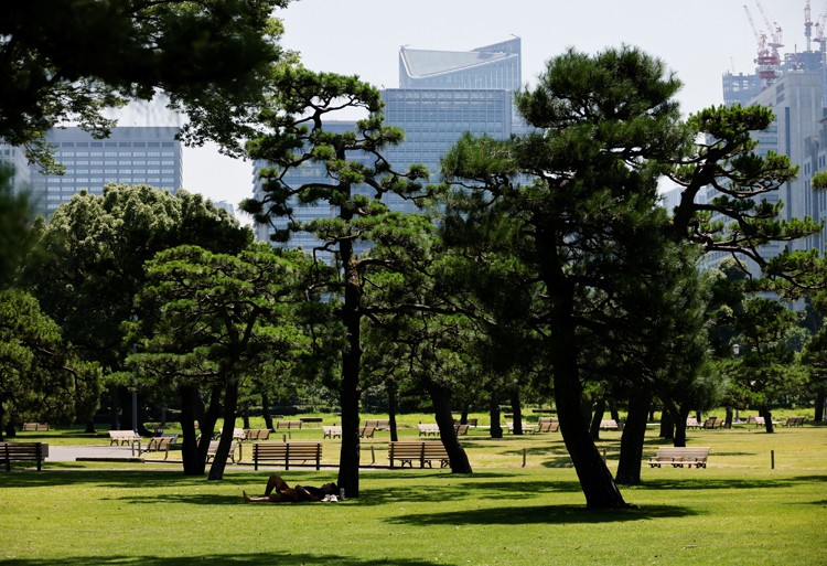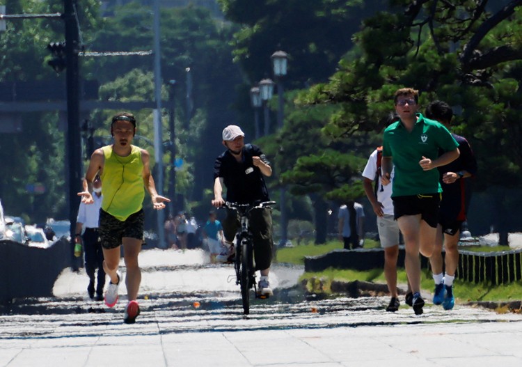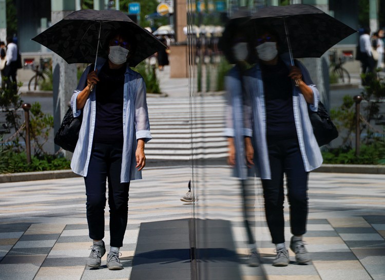 在雅虎日本的一項調查中,約21%的受訪者表示,使用空調可以幫忙他們抵抗高溫;有約53%的人將補充水分列為第一優先;只有12%的人表示,在政府規定戶外不用再戴口罩後,他們已經沒戴口罩了。(圖源:路透社)