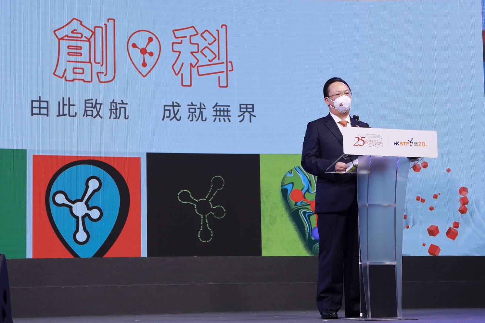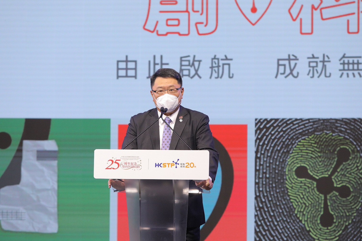 香港科技園公司今天(6日)慶祝成立20周年,行政長官李家超、中聯辦副主任譚鐵牛、創新科技及工業局局長孫東,聯同本地獨角獸公司創辦人、園區初創企業、學術及商界領袖等,共同出席慶祝活動。