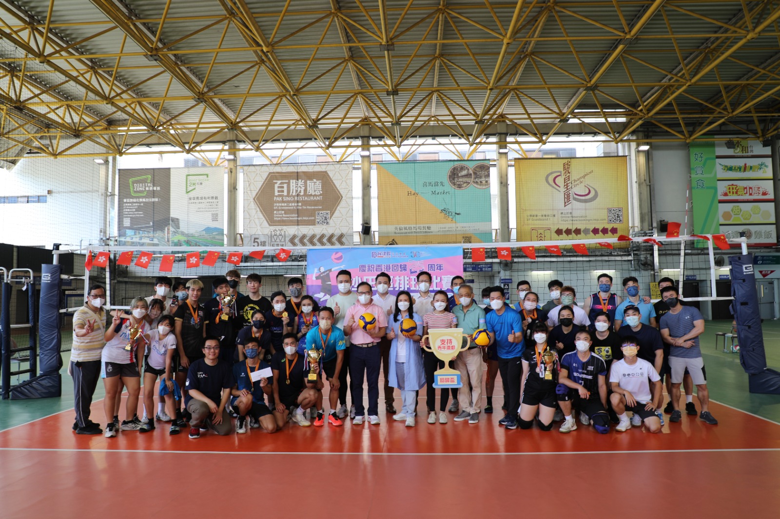 民建聯沙田支部舉辦「沙田區排球比賽」,邀請了沙田民政事務專員柯家樂、全國政協委員彭長緯、立法會議員葛珮帆與李世榮、沙田鄉事委員會主席莫錦貴及民建聯沙田支部主席祝慶台等嘉賓出席,並為勝出隊伍頒獎。