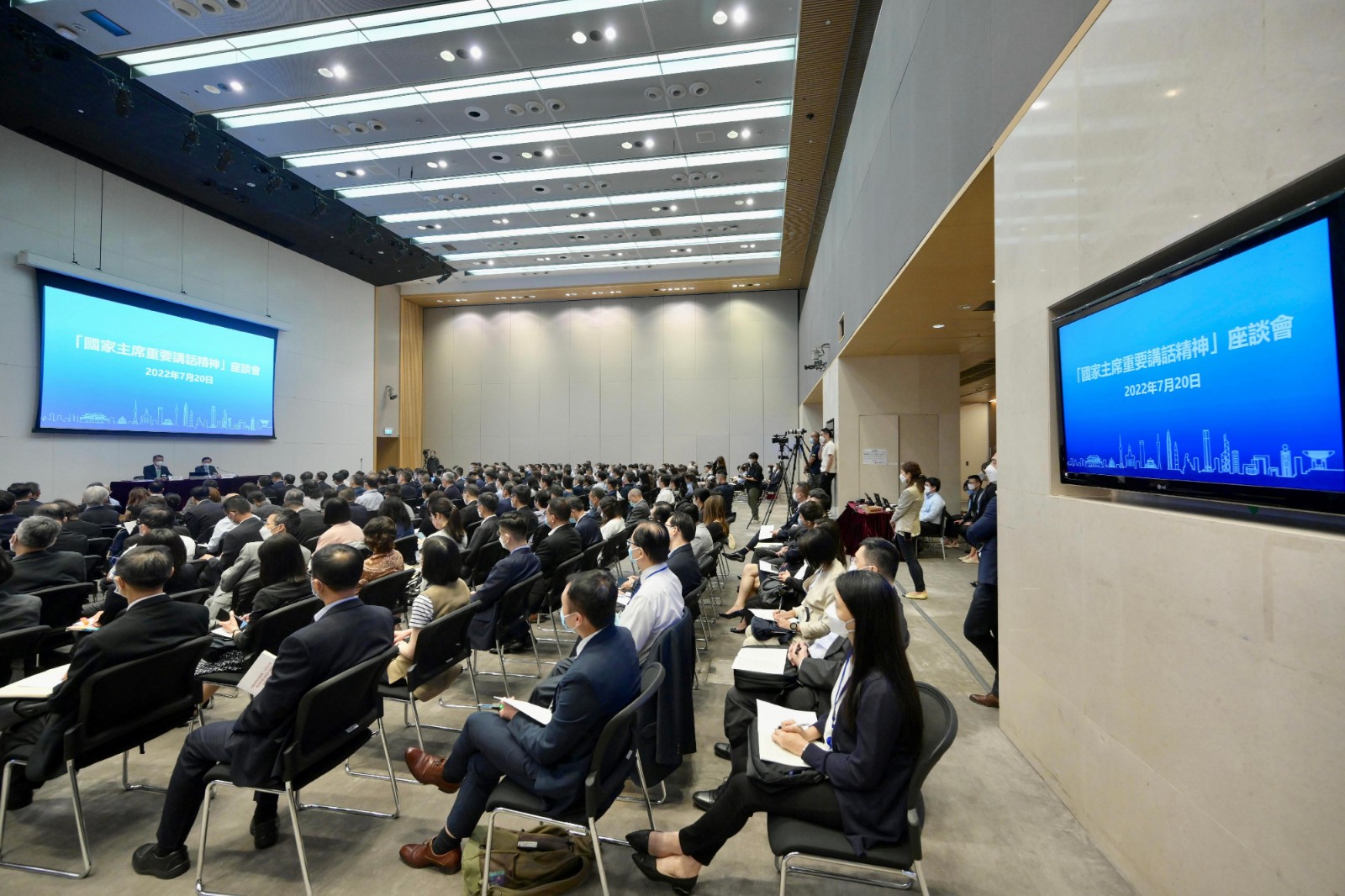 李家超在座談會強調,習主席的重要講話具有重要的里程碑意義,是特區政府未來五年施政的藍圖和領航燈。他說:「習主席在重要講話中指出『一國兩制』是經過實踐反覆檢驗,是一個好制度,沒有理由改變,必須長期堅持。他同時深刻闡述了『一國兩制』的重要邏輯和理論,強調『一國』原則越堅固,『兩制』優勢越彰顯。」