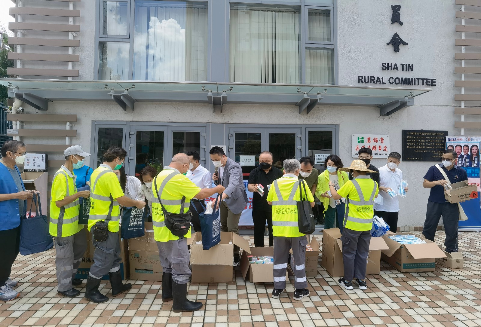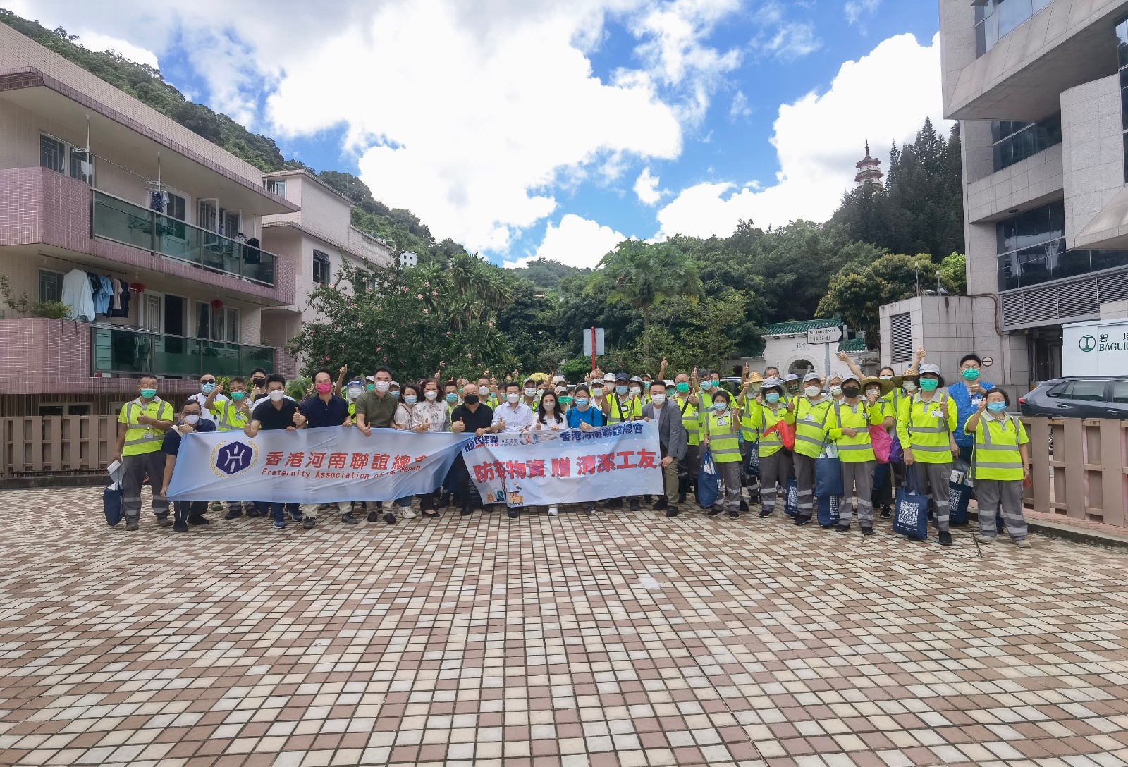 全國政協委員暨香港河南聯誼總會主席楊志紅、香港河南聯誼總會會長湛大衛和常務副會長高波、曾安業帶領香港河南聯誼總會一眾義工與港區全國人大代表兼立法會議員陳勇、立法會議員葛珮帆、李世榮及民建聯沙田支部主席祝慶台等到沙田區向清潔工友派發口罩、消毒噴霧、快速檢測包和防護面罩等抗疫物資,感謝各位清潔工友辛勤工作。