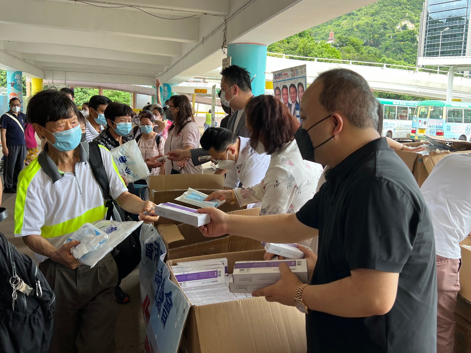 香港河南聯誼總會一眾義工還到港鐵沙田站出口向經過市民派發抗疫物資,呼籲大家做好防護,不可掉以輕心。而兩場活動合共派出兩萬個口罩、2500支檢測包、2000支消毒噴霧、400盒蓮花清瘟膠囊及300件防護衣等。