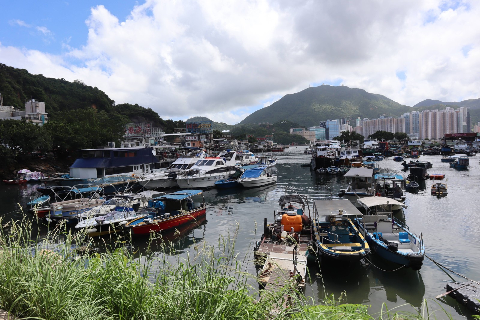 鯉魚門避風塘,左方遠處見海鮮酒家招牌。